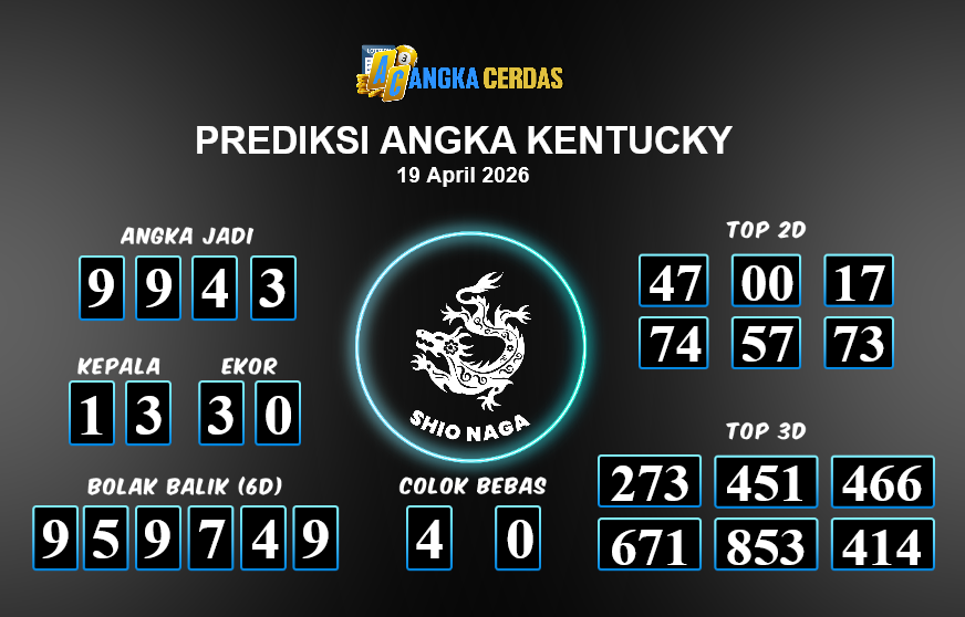 Prediksi Togel KENTUCKYuntuk hari ini Minggu, 19 April 2026, adalah salahsatu jenis togel yang memiliki banyak penggemar.Ini terutama ditujukanbagi Anda yang menyukai 4d/3d/2d. Prediksi Angka Cerdas yang kamisediakan,bisa