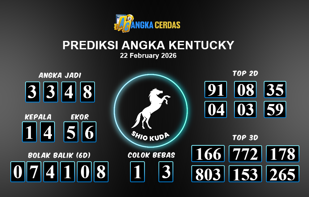 Prediksi Togel KENTUCKY untuk hari ini Minggu, 22 Februari 2026, adalah salah
