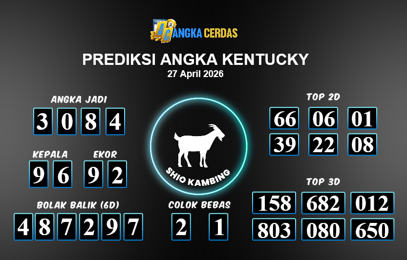 Prediksi Togel KENTUCKY untuk hari ini Senin, 27 April 2026, adalah salahsatu jenis togel yang memiliki banyak penggemar.Ini terutama ditujukanbagi Anda yang menyukai 4d/3d/2d. Prediksi Angka Cerdas yang kamisediakan,bisa