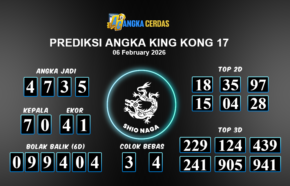 Angka Cerdas : Bocoran Prediksi Togel KING KONG 17 Tanggal 06 FEBRUARI 2026