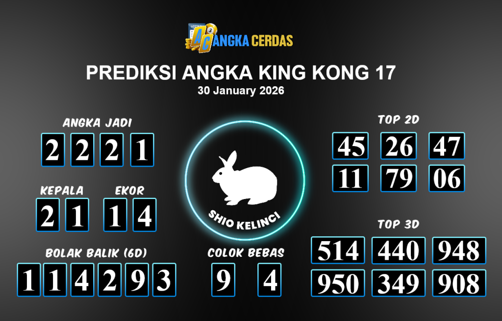 Prediksi Togel KING KONG 17 untuk hari ini Jumat 30 Januari 2026,adalah salah