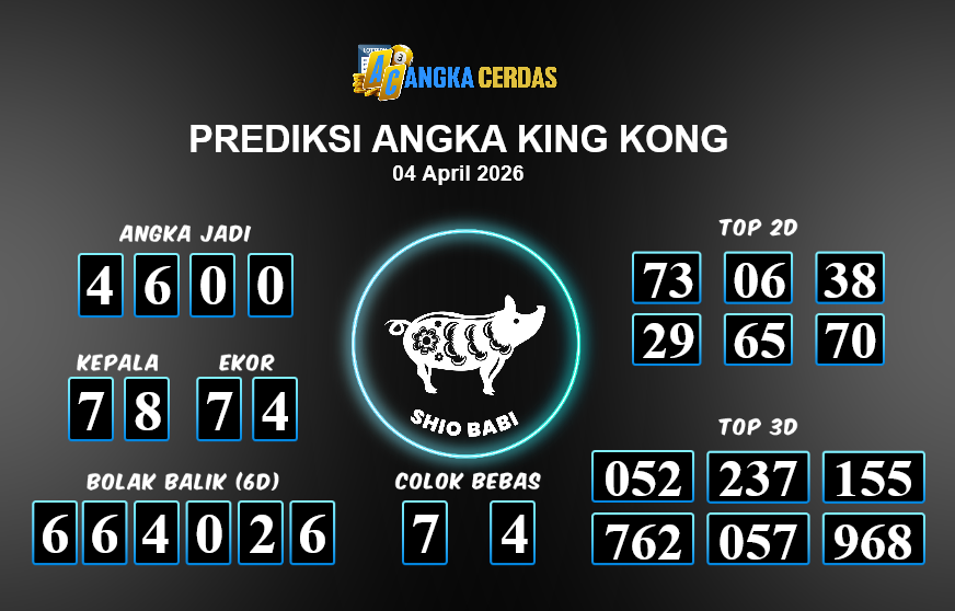 Prediksi Togel KING KONG untuk hari ini Sabtu, 04 April 2026, adalah salah