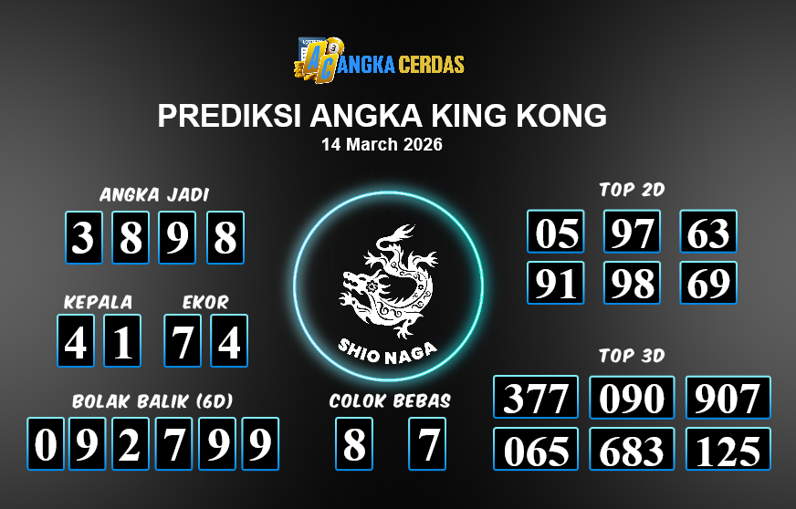 Prediksi Togel KING KONG untuk hari ini Sabtu, 14 Maret 2026, adalah salah