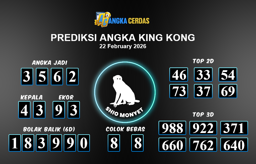 Prediksi Togel KING KONG untuk hari ini Minggu, 22 Februari 2026, adalah salah