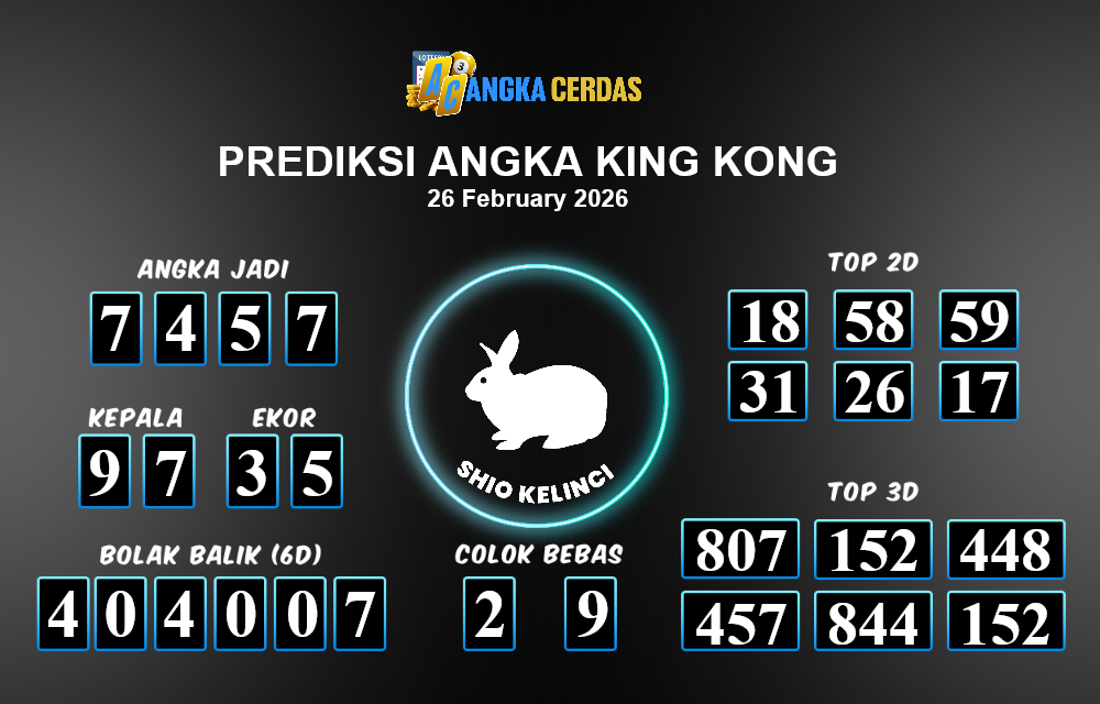 Angka Cerdas : Bocoran Prediksi Togel KING KONG Tanggal 26 FEBRUARI 2026