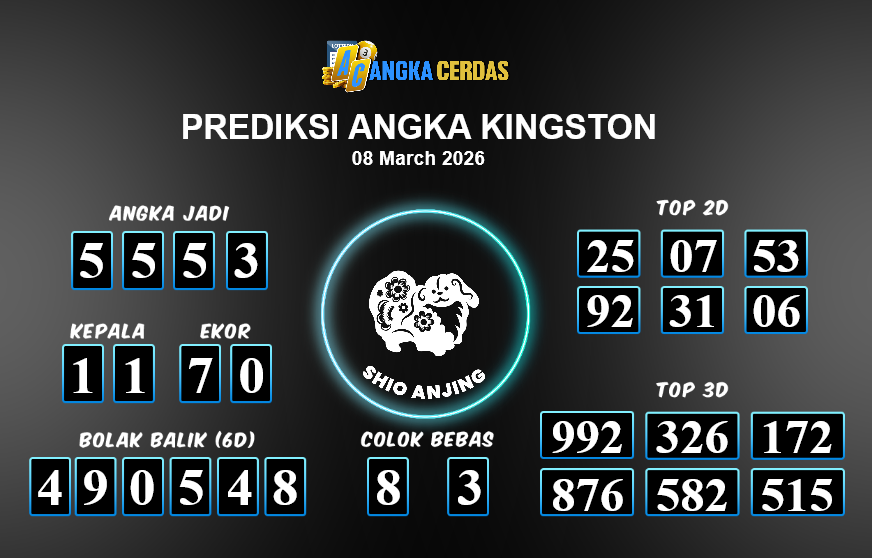 Prediksi Togel KINGSTON untuk hari ini Minggu, 08 Maret 2026, adalah salah