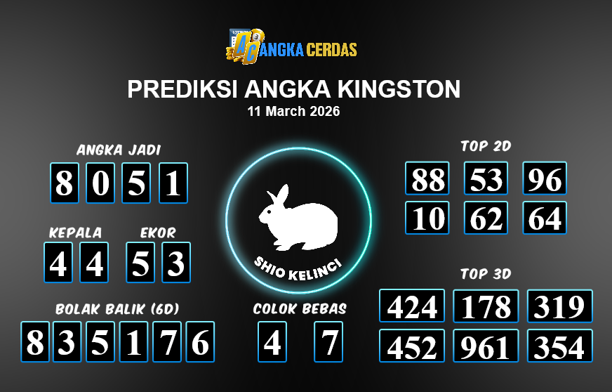Prediksi Togel KINGSTON untuk hari ini Rabu, 11 Maret 2026, adalah salah
