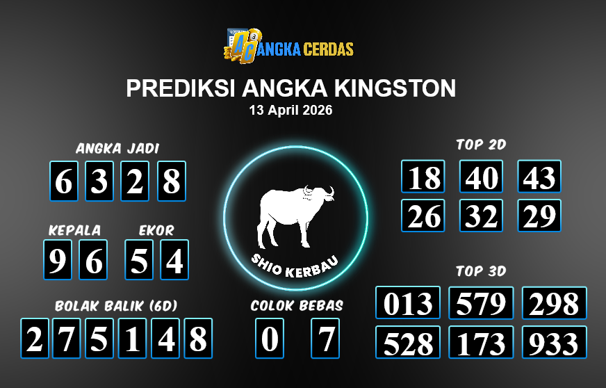 Prediksi Togel KINGSTON untuk hari ini Senin, 13 April 2026, adalah salah
