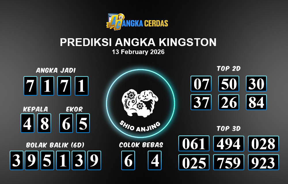 Prediksi Togel KINGSTON untuk hari ini Jumat, 13 Februari 2026, adalah salah