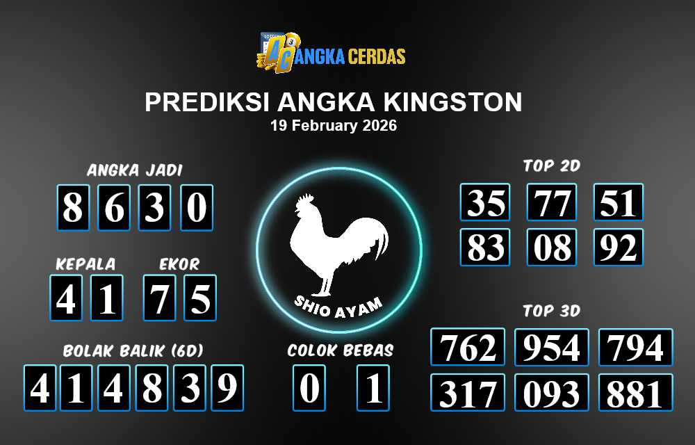Prediksi Togel KINGSTON untuk hari ini Kamis, 19 Februari 2026, adalah salah