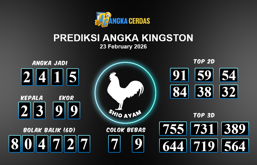 Prediksi Togel KINGSTON untuk hari ini Senin, 23 Februari 2026, adalah salah