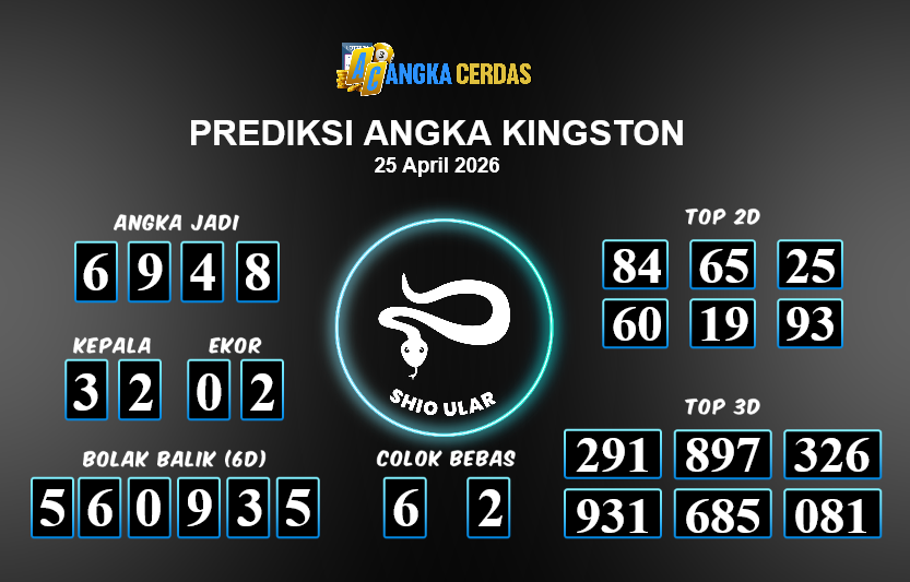 Prediksi Togel KINGSTON untuk hari ini Sabtu, 25 April 2026, adalah salahsatu jenis togel yang memiliki banyak penggemar.Ini terutama ditujukanbagi Anda yang menyukai 4d/3d/2d. Prediksi Angka Cerdas yang kamisediakan,bisa