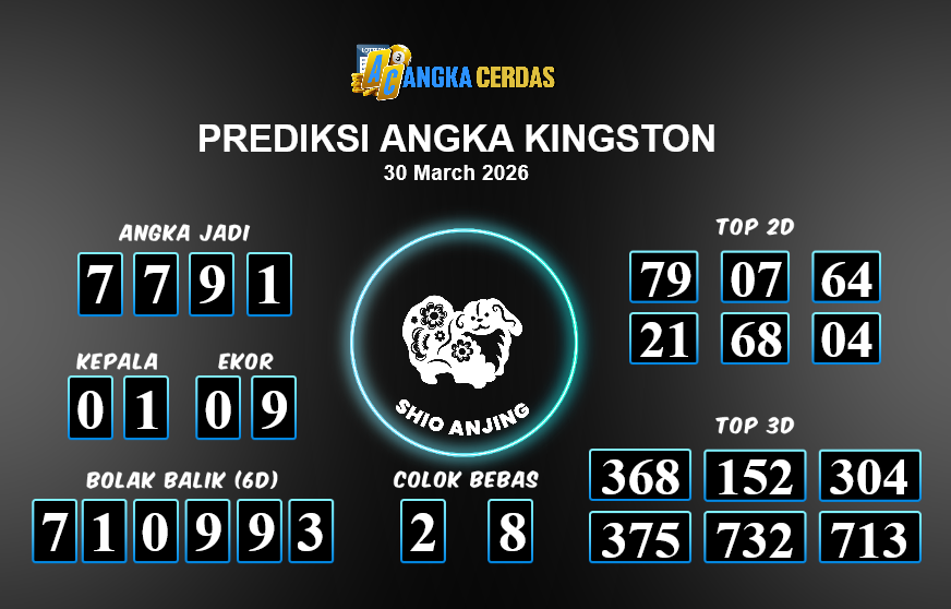 Prediksi Togel KINGSTON untuk hari ini Senin, 30 Maret 2026, adalah salah
