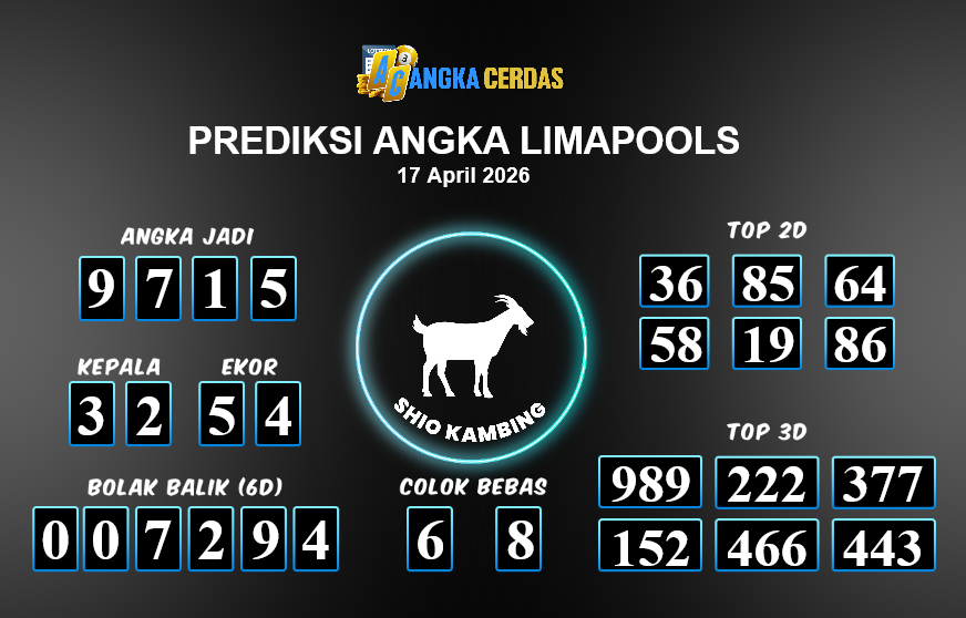 Prediksi Togel LIMAPOOLS untuk hari ini Jumat, 17 April 2026, adalah salah