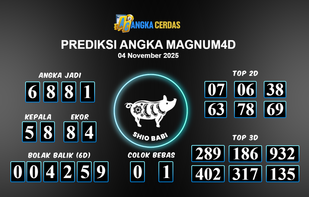 Prediksi Togel MAGNUM4D untuk hari ini Selasa 04 November 2025, adalah salah