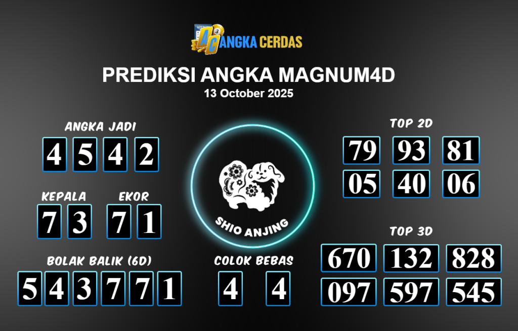 Prediksi Togel MAGNUM4D untuk hari ini Senin 13 Oktober 2025, adalah salah