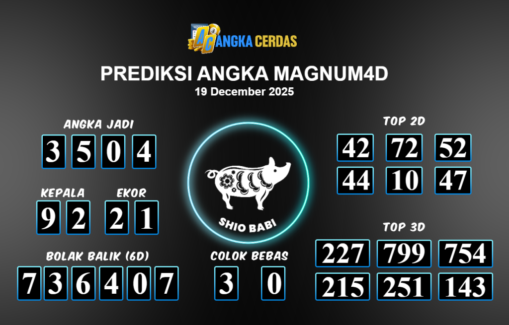 Prediksi Togel MAGNUM4D untuk hari ini Jumat 19 Desember November 2025, adalah salah