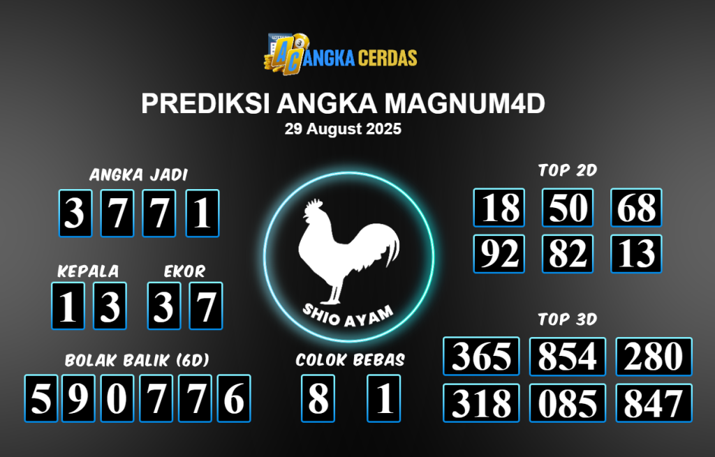 Prediksi Togel MAGNUM4D untuk hari ini Jumat 29 Agustus 2025, adalah salah