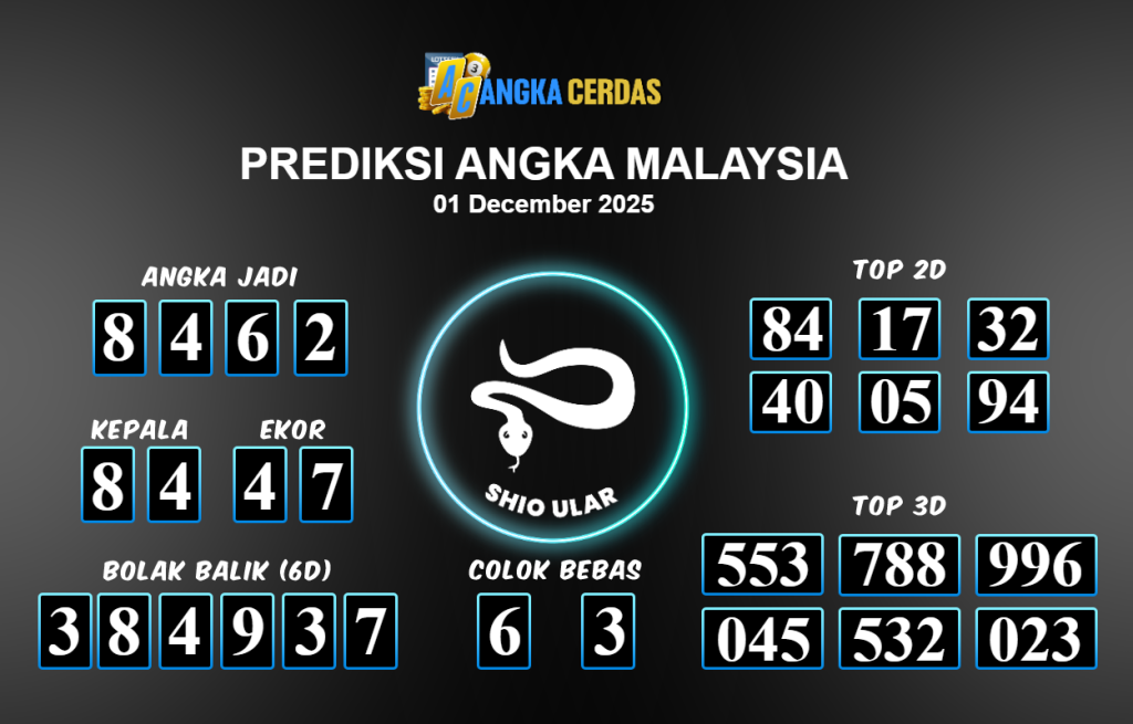Prediksi Togel MALAYSIA untuk hari ini Senin 1 Desember November 2025, adalah salah