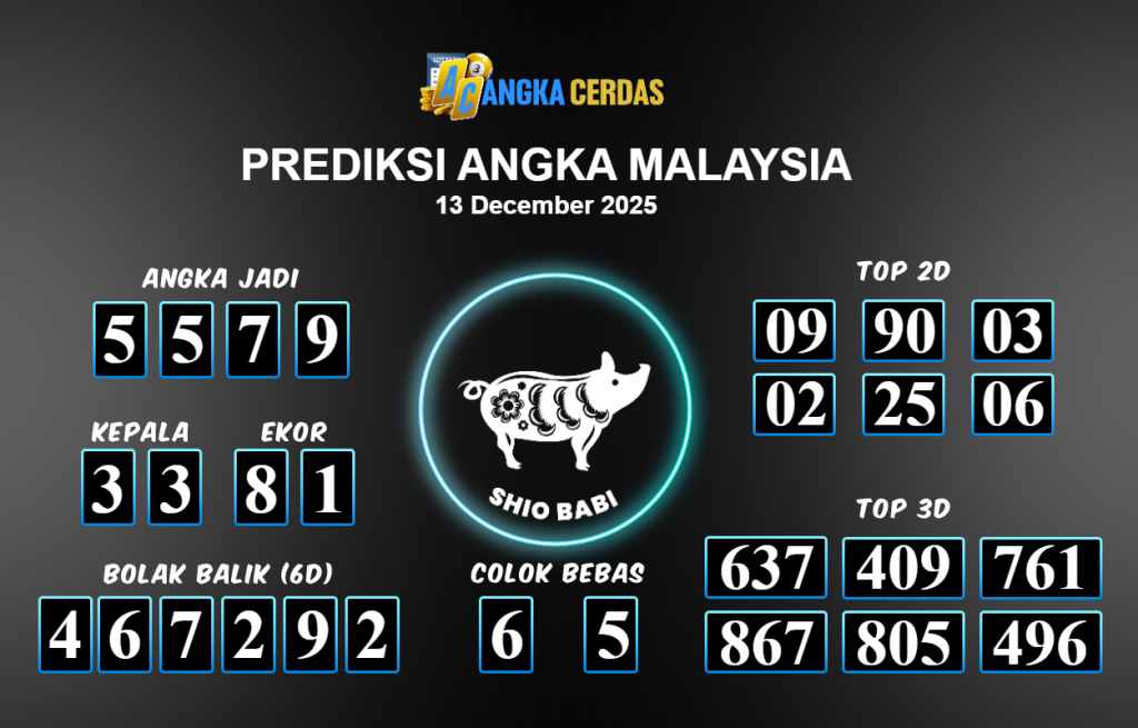 Prediksi Togel MALAYSIA untuk hari ini Sabtu 13 Desember November 2025, adalah salah