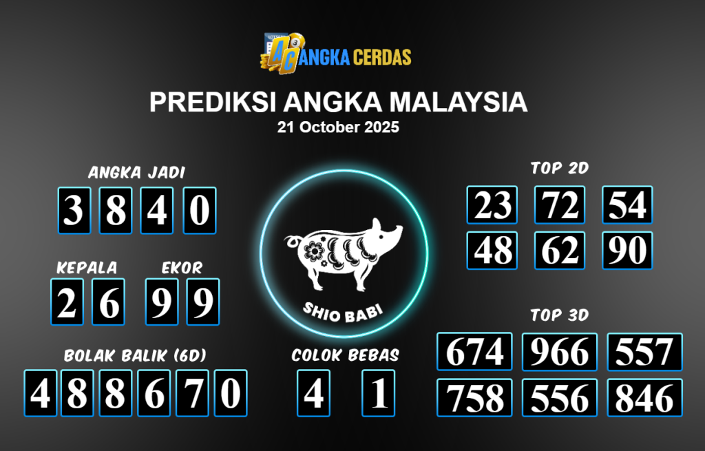 Prediksi Togel MALAYSIA untuk hari ini Selasa 21 Oktober 2025, adalah salah