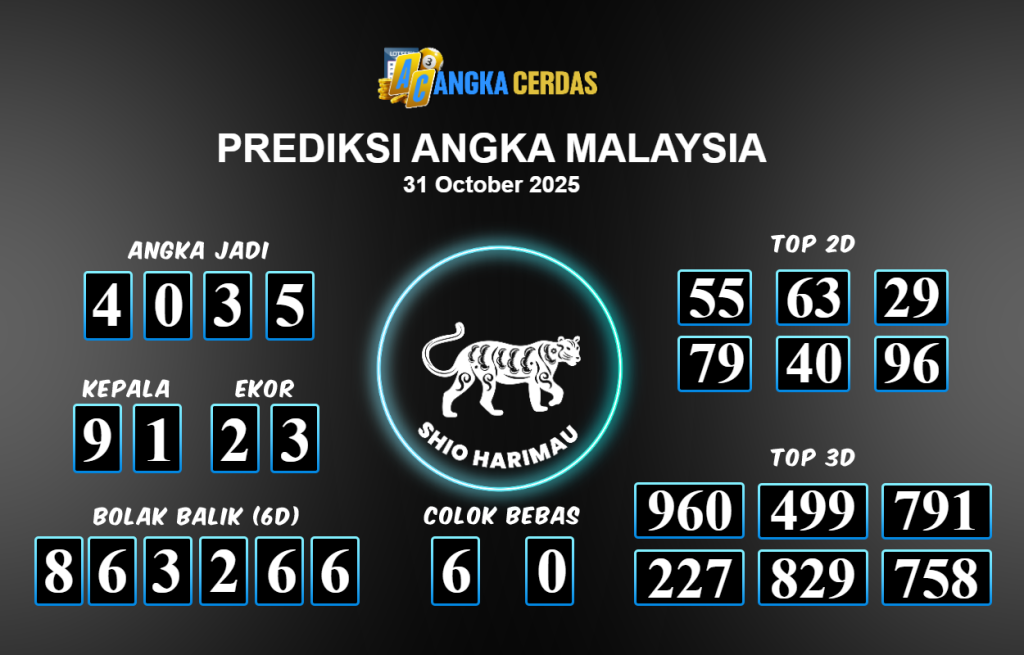 Prediksi Togel MALAYSIA untuk hari ini Jumat 31 Oktober 2025, adalah salah
