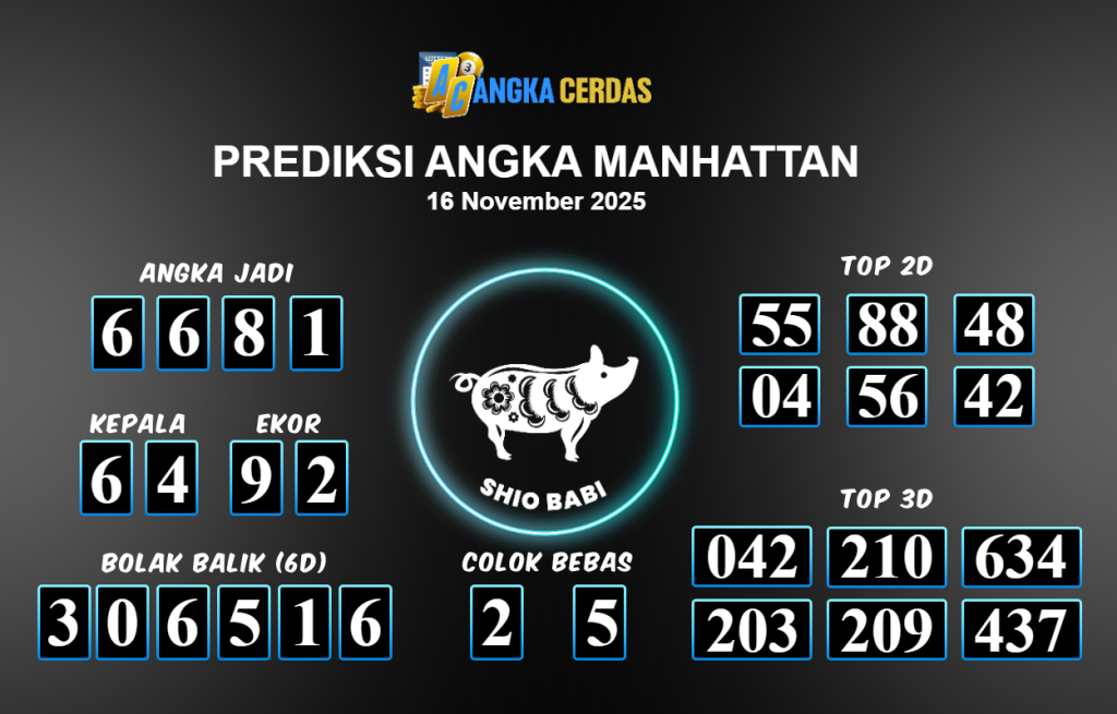 Prediksi Togel MANHATTAN untuk hari ini Minggu 16 November 2025, adalah salah