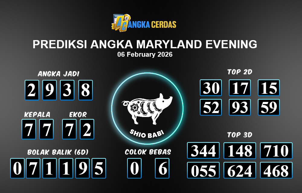 Prediksi Togel MARYLAND EVENING untuk hari ini Jumat, 06 Februari 2026, adalah salah