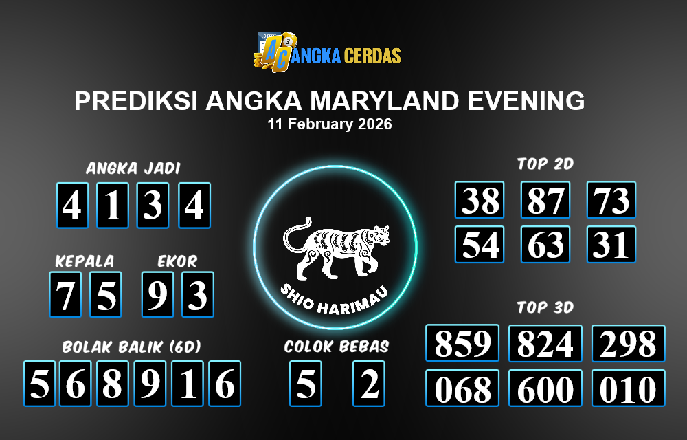 Prediksi Togel MARYLAND EVENING untuk hari ini Rabu, 11 Februari 2026, adalah salah