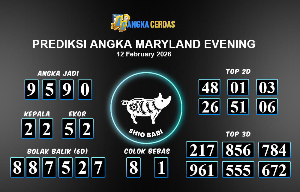 Prediksi Togel MARYLAND EVENING untuk hari ini Kamis, 12 Februari 2026, adalah salah
