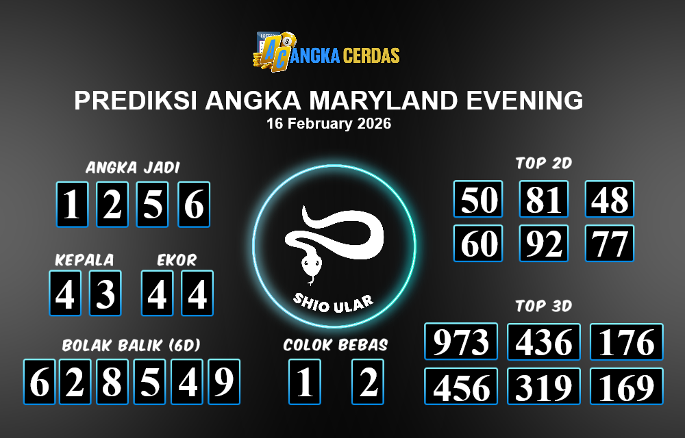 Prediksi Togel MARYLAND EVENING untuk hari ini Senin, 16 Februari 2026, adalah salah