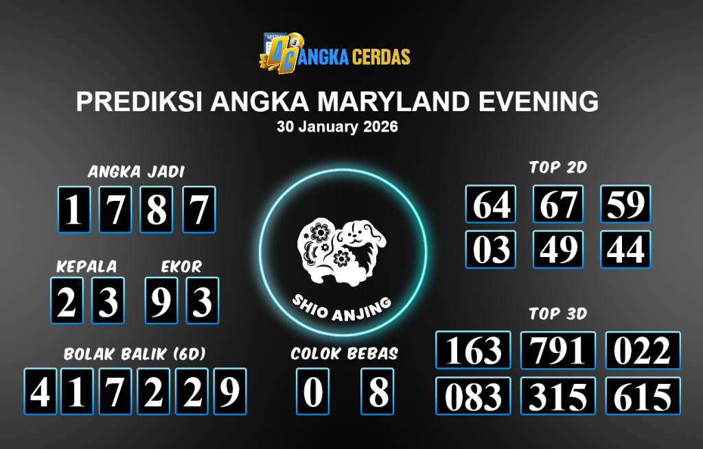 Angka Cerdas : Bocoran Prediksi Togel MARYLAND EVENING Tanggal 30 JANUARI 2026