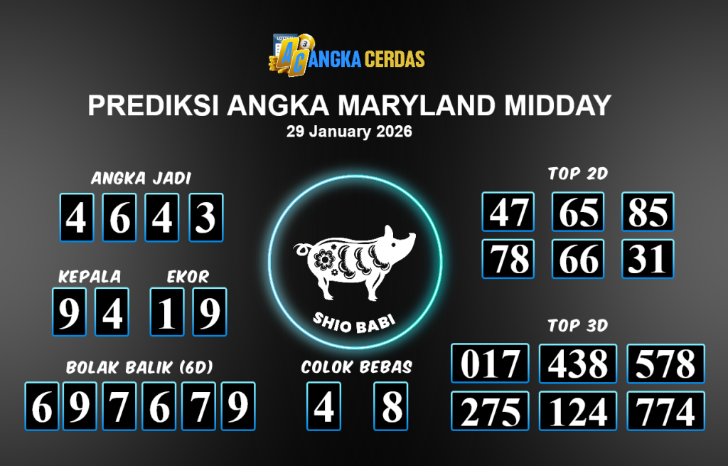 Prediksi Togel MARYLAND MIDDAY untuk hari ini Kamis 29 Januari 2026,adalah salah
