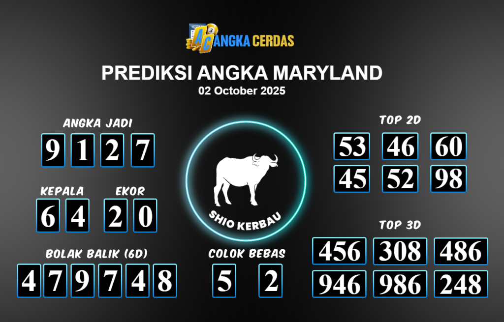 Prediksi Togel MARYLAND untuk hari ini Kamis 02 Oktober 2025, adalah salah