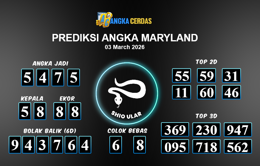 Prediksi Togel MARYLAND untuk hari ini Selasa, 03 Maret 2026, adalah salah