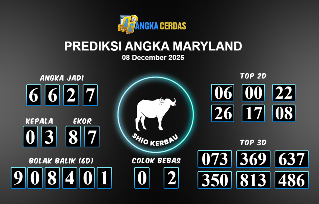 Prediksi Togel MARYLAND untuk hari ini Jumat 05 Desember November 2025, adalah salah