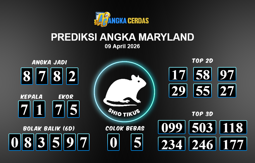 Prediksi Togel MARYLAND untuk hari ini Kamis, 09 April 2026, adalah salah