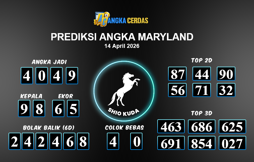 Prediksi Togel MARYLAND untuk hari ini Selasa, 14 April 2026, adalah salah