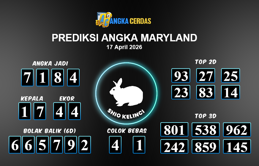 Prediksi Togel MARYLAND untuk hari ini Jumat, 17 April 2026, adalah salah