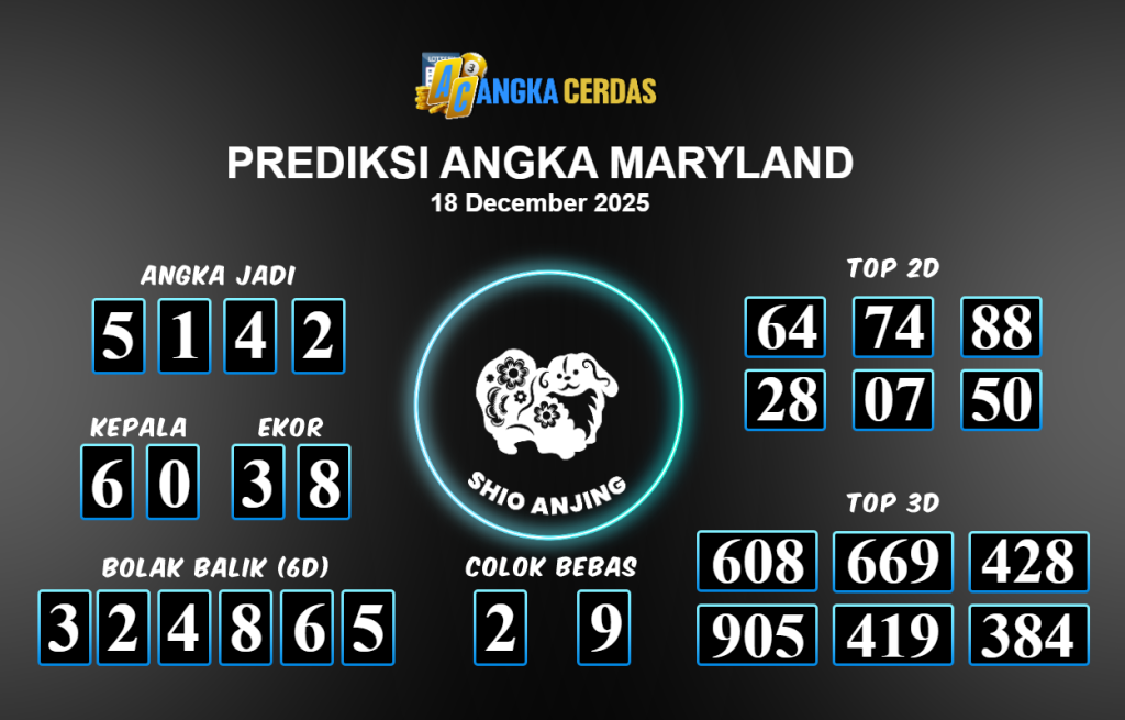 Prediksi Togel MARYLAND untuk hari ini Kamis 18 Desember November 2025, adalah salah