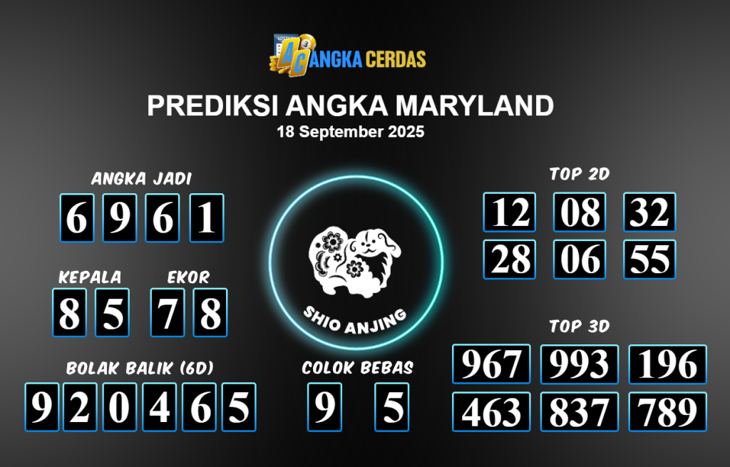 Prediksi Togel MARYLAND untuk hari ini Kamis 18 September 2025, adalah salah