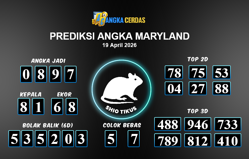 Prediksi Togel MARYLAND untuk hari ini Minggu, 19 April 2026, adalah salahsatu jenis togel yang memiliki banyak penggemar.Ini terutama ditujukanbagi Anda yang menyukai 4d/3d/2d. Prediksi Angka Cerdas yang kamisediakan,bisa