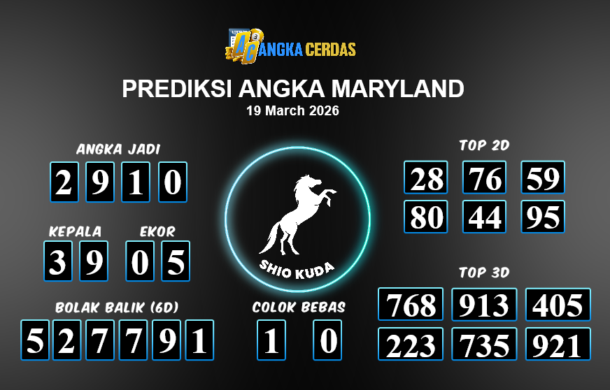 Prediksi Togel MARYLAND untuk hari ini Kamis, 19 Maret 2026, adalah salah