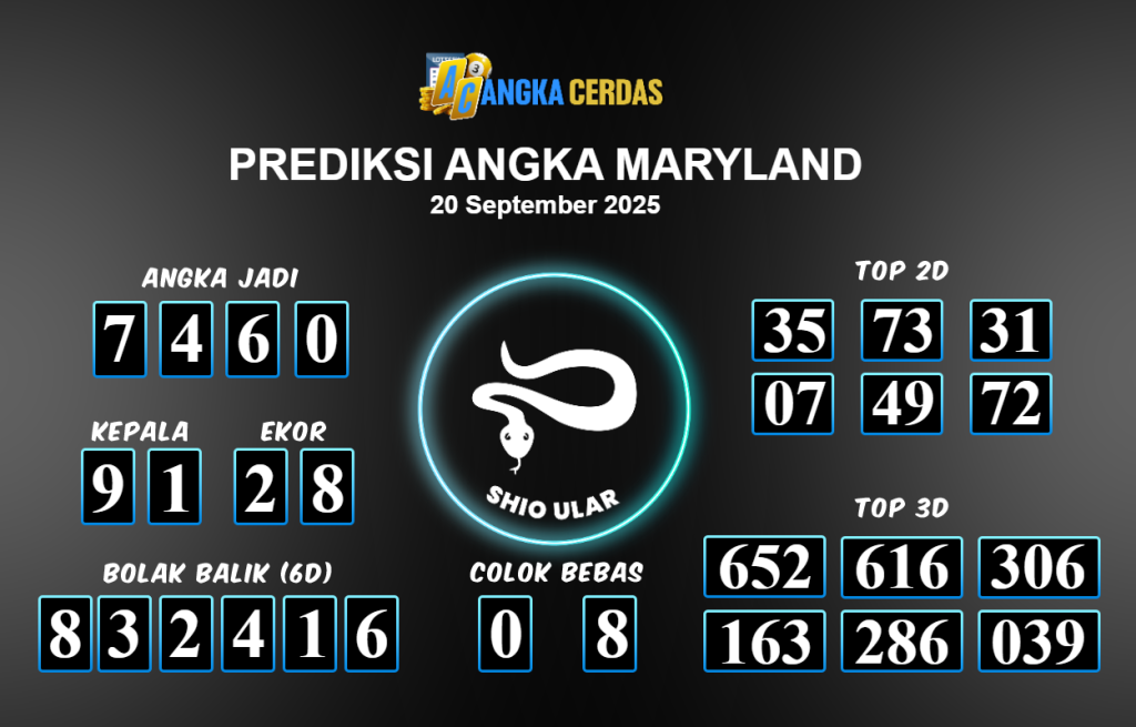 Angka Cerdas : Bocoran Prediksi Togel MARYLAND Tanggal 20 September 2025