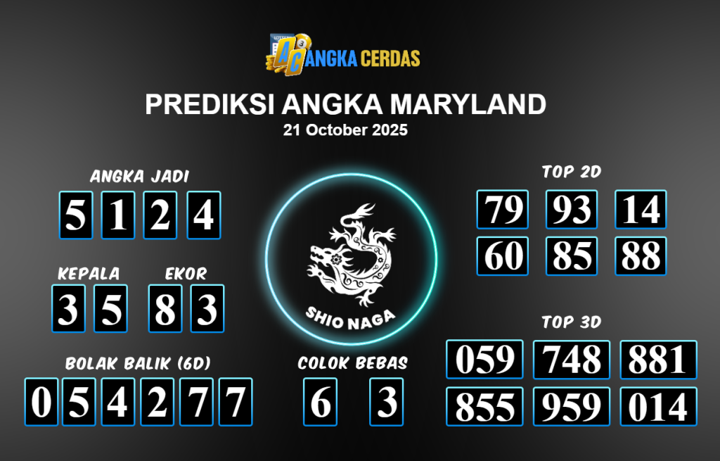Prediksi Togel MARYLAND untuk hari ini Selasa 21 Oktober 2025, adalah salah