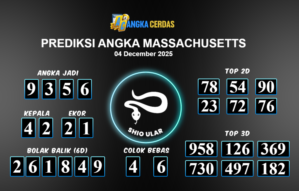 Prediksi Togel MASSACHUSETTS untuk hari ini Kamis 04 Desember November 2025, adalah salah