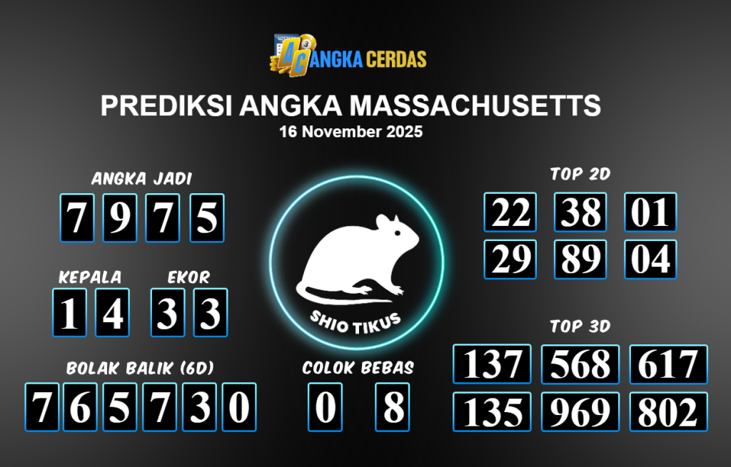 Prediksi Togel MASSACHUSETTS untuk hari ini Minggu 16 November 2025, adalah salah