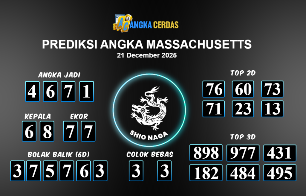 Prediksi Togel MASSACHUSETTS untuk hari ini Minggu 21 Desember November 2025, adalah salah