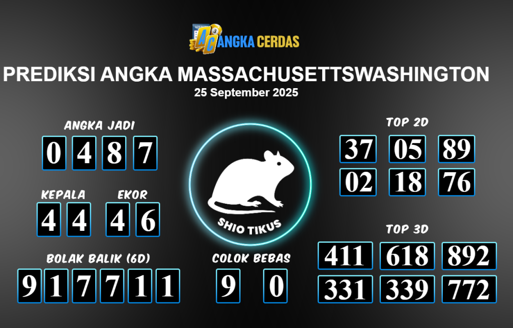 Prediksi Togel MASSACHUSETTS untuk hari ini Kamis 25 September 2025, adalah salah
