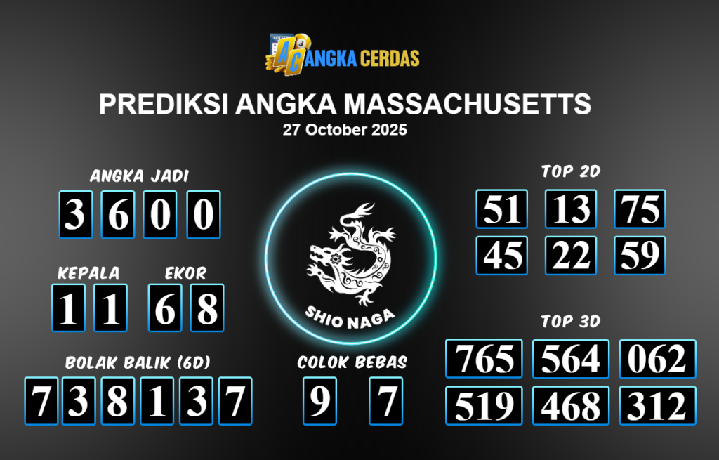 Prediksi Togel MASSACHUSETTS untuk hari ini Senin 27 Oktober 2025, adalah salah
